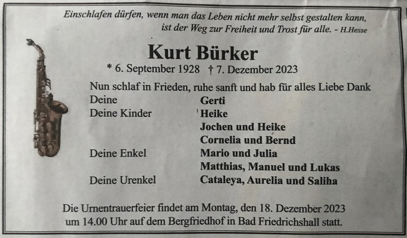 2023 Beerdigung Kurt Bürker 18.12.2023
